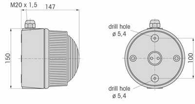 cable gland m20 x 1,5; cable diameter 6 - 12 mm or from the back with rubber grommet; cable diameter 6 - 12 mm |