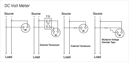 ㆍFor higher range than 750V, use external multiplier or voltage-dividing multiplier with a 1mA instrument. ㆍThe D.C volmeter shuld be connected to the positive side line as connection diagram. ㆍThe standard current consumption of these D.C voltmeter is 1mA.(1k Ω/V). |