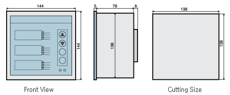 ㆍPower supply : 85 to 250 Vac(50/60Hz) / 110 to 300Vdc ㆍConsumption : approx, 5VA ㆍFrequency : 45Hz to 65Hz ㆍVoltage Input : up to 470Vdc without PT - 270Vac(L-n), 470Vac(L-L) - Burden : 0.02VA ㆍCurrunt input : Possible to use various wiring connections such as 2CT,3CT. - Rated current : 5A, Tht maximum current : 10A - Burden : 0.15VA ㆍDI/DO : The input for switch gear Panel and Relay output for CB control. - Insulation : Photo Coupler isolation - DI : 6point(Option)-12V Source Input - DO : 2point Relay Output(Option) - Rated load : 250Vdc, 5A ㆍCommunication : RS-485 Communication Standard. - Protocol : Modbus RTU - Communication mode : RS-485, Half duplex, 2Wire - Baudrate : 4800, 9600, 19200, 38400 bps - Multi drop mode : Up to 99 instruments ㆍMethod of lsolation : The MPM320 is adapted Galvanic lsolation method and EMI Filter. (Voltage Input and Current Input) ㆍEnvironmental - Temp : -20℃ to 60℃(-4℉ to 140℉) - Humidity : 50 to 90%(non-condensing) ㆍDimension : 144W x 144H x 138D ㆍCutting Size : Square 138W x 138H ㆍOrdering  |