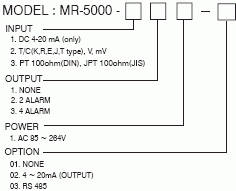 The MR-5000 series BAR GRAPHIC & digital indicator with alarm process control & instrumentation, are the brains and central nervous system of industrial plant. Monitoring and controlling those critical operations are vital to productivity. INPUT: DC 4 ~ 20mA(1 ~ 5V) or RTD (mA Type require remote 250ohm 10W ± 1% resistance, refer to Terminal) 2 or 4 point ALARM (HH.H, H.L, L.LL, HH,H, L,LL) PEAK-HOLD FUNCTION INDICATING MAXIMUM VALUE BAR GRAPHIC DUAL MODE (FULL BAR, CENTER BAR) RS-485 COMMUNICATION(OPTION) FEATURES GENERAL INFORMATION 4 ~ 20mA OUTPUT AND SCALING FUNCTION