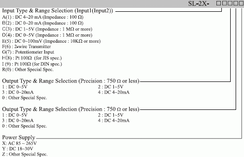 Input (2 Channels) (V,mV,mA,Looped Power,Potentiometer, and RTD > 2 Outputs (Isolated) (V / mA) > Power AC 85 ~ 265V or DC 24V