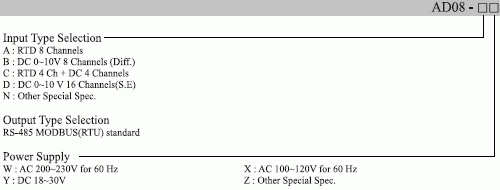 > Input (AD 24 Bit) - RTD 8 Channel Max. - dc Voltage Diff. 8 Channel Max. - Single Ended 16 Channel Max. > Output(Isolated) > 3 Relay Contact output > Serial Interface (RS-485) - MODBUS protocol