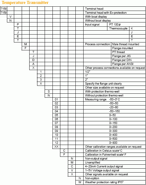 Measuring ranges PT100 ohm, JIS-C-1604-1981