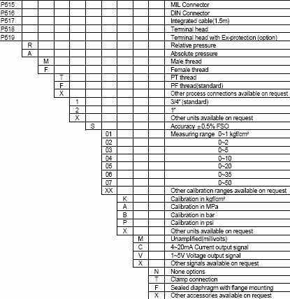 Pressure ranges 0~1 to 0~50kgf/cm2 absolute or gauge pressure
