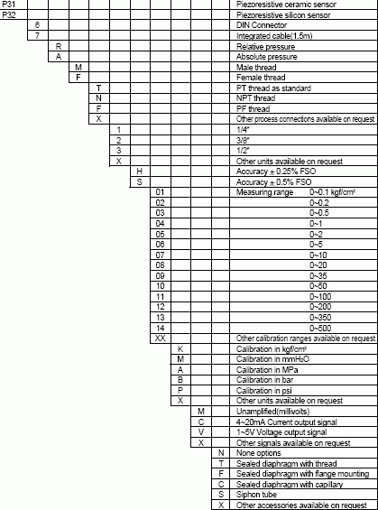 Pressure ranges 0~0.5 to 0~500kgf/cm2 relative 0~0.1 to 350kgf/cm2 relative