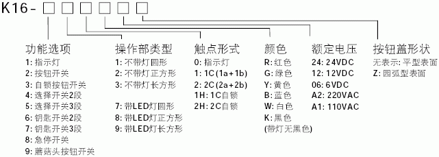K16-311□ K16-321□ K16-331□ □颜色:R,G,Y,B,W,K; |